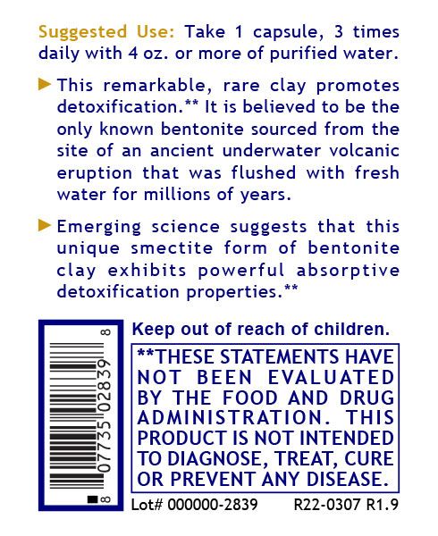 Due to the clay’s vast interactive surface area, two capsules, taken 3 times daily (with 4 oz of water)are recommended for beneficial results. It is not necessary to hydrate or soak the clay before use.